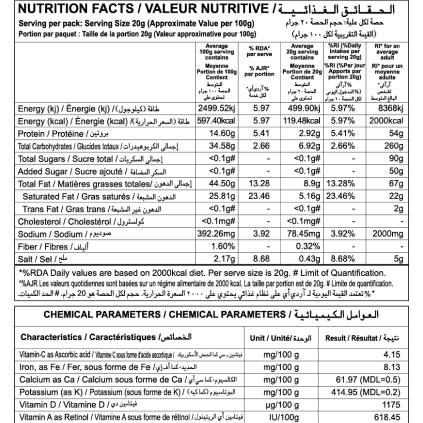 Serving Per Pack : Serving Size 20g (Approximate Value Per 100g) | |||||