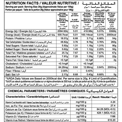 Serving Per Pack : Serving Size 20g (Approximate Value Per 100g) | |||||